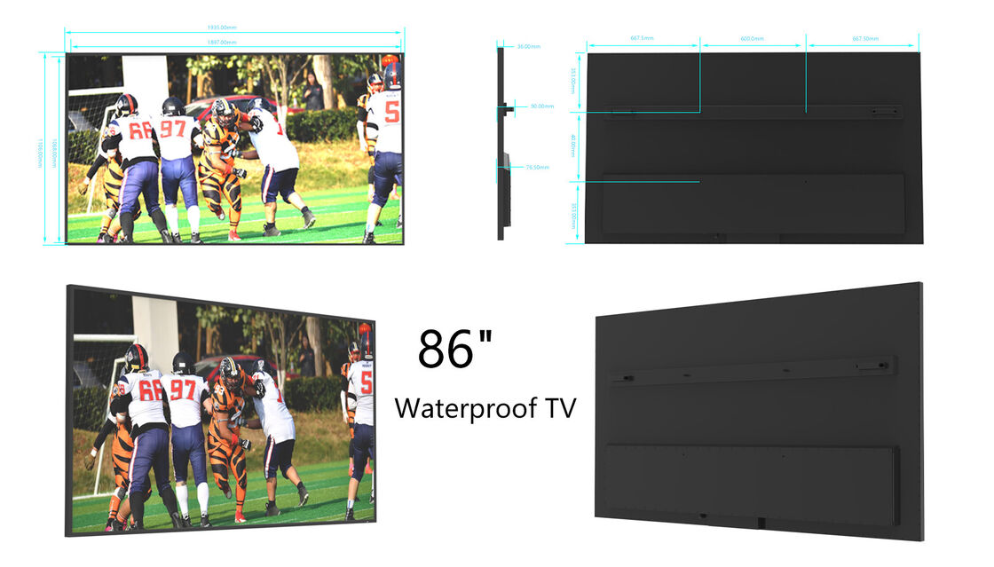 تلفزيون خارجي مقاوم للماء مقاس 86 بوصة 2000 شمعة في المتر المربع بدقة 4K، مثبت على الحائط IP55